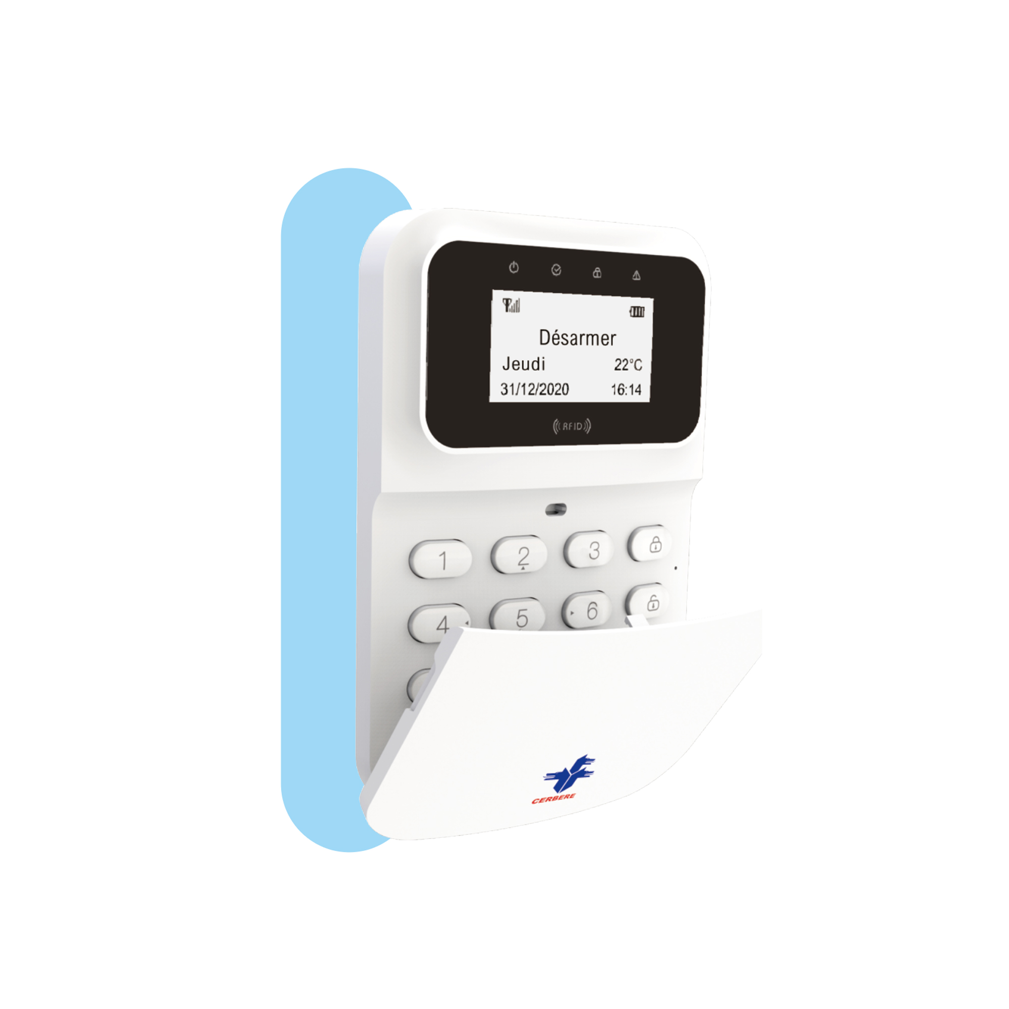 Ce clavier facilite la programmation et l’utilisation du système. Ces touches en caoutchouc silicone offrent une meilleure ergonomie et durabilité. Un affichage LCD à matrice et un affichage graphique multi-langue, ainsi que d’autres fonctionnalités. L’état de la centrale peut être affiché sur le clavier, et l’état des zones sera également montré. Jusqu’à 32 cartes (Tags) RFID peut être associées. L’utilisateur peut activer/désactiver la centrale via les cartes (Tags) RFID. Ce clavier filaire intègre un capteur de température qui affiche en temps réel la température de l’environnement, avec deux options : Fahrenheit ou Celsius.