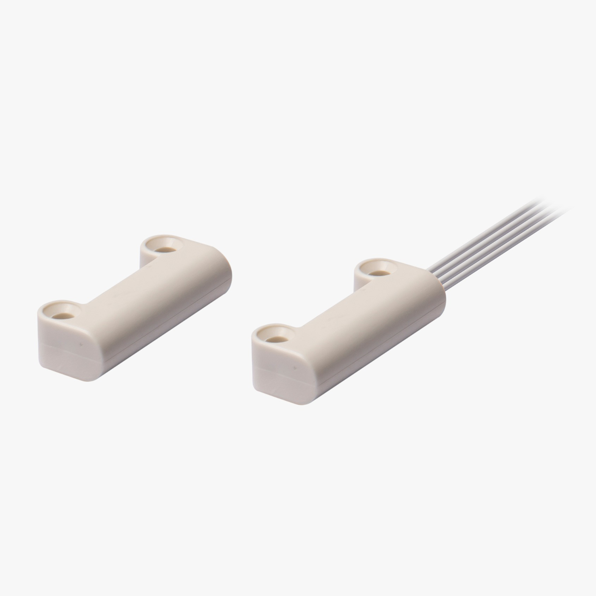 Ce petit contact fin est doté de 2 trous de vis pour une fixation avec vis filetées et de 4 fils de sortie : 2 pour le contact et 2 pour l’anti-sabotage.