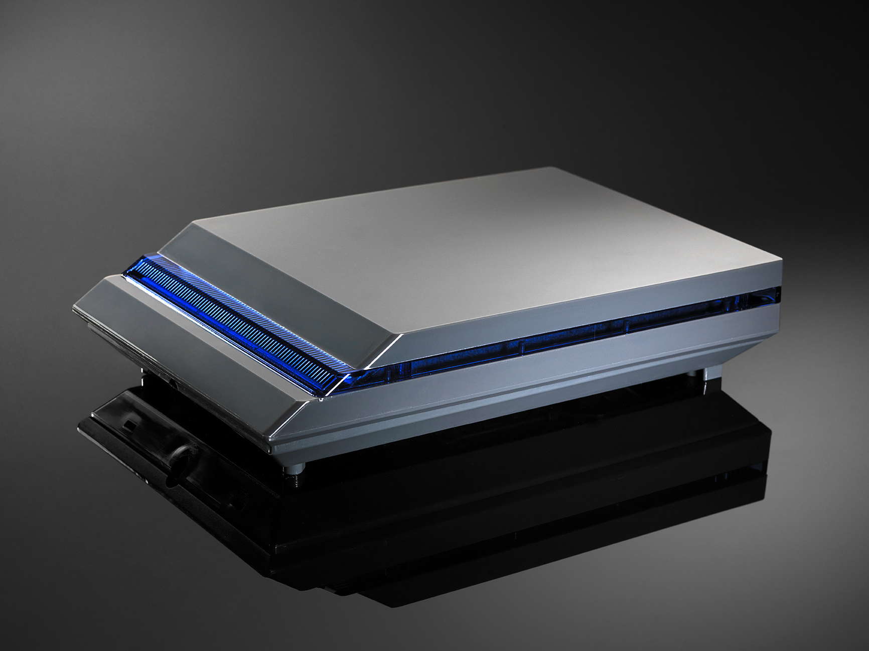 Boîtier en polycarbonate et couvercle intérieur en tôle galvanisée.